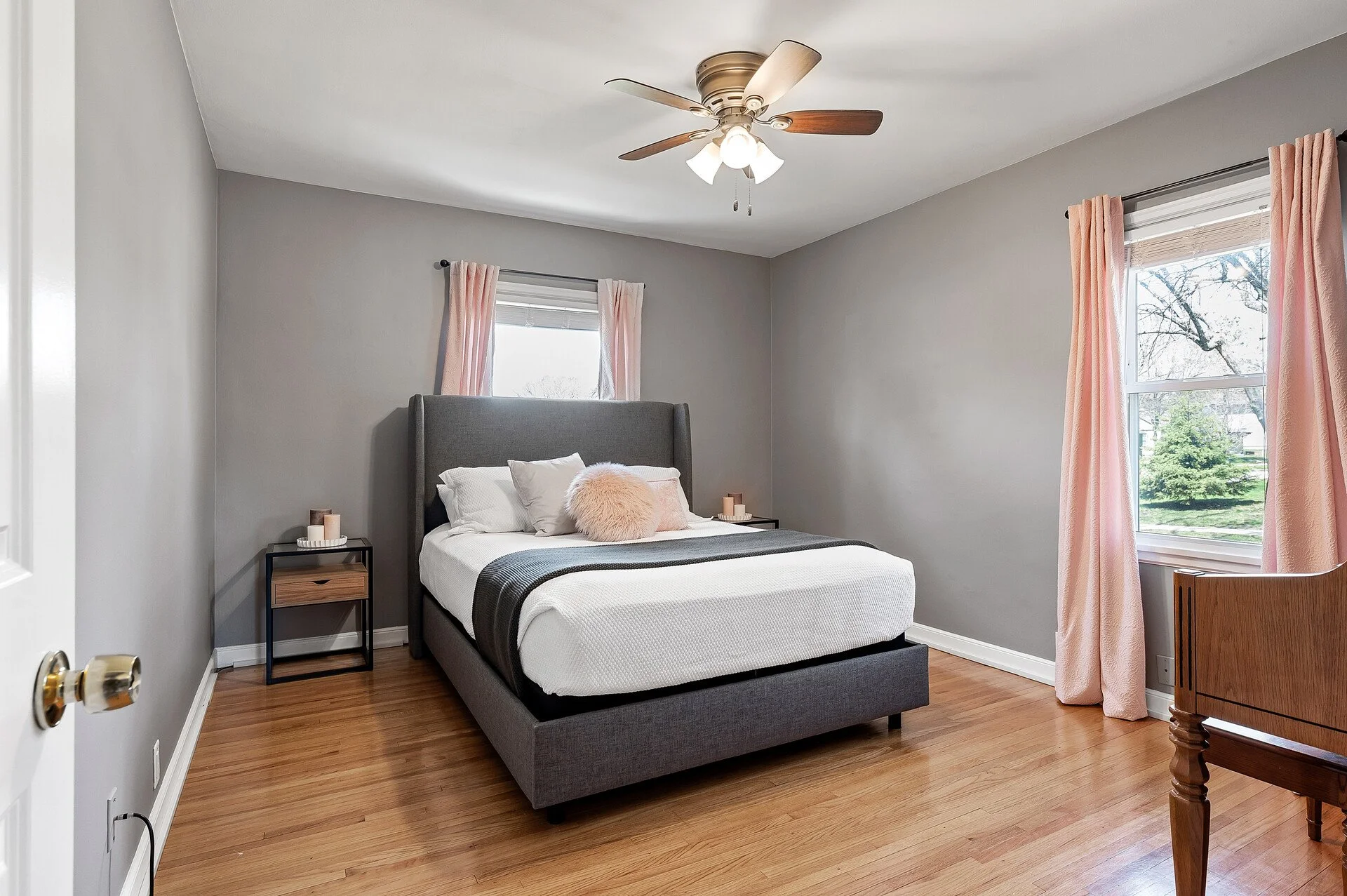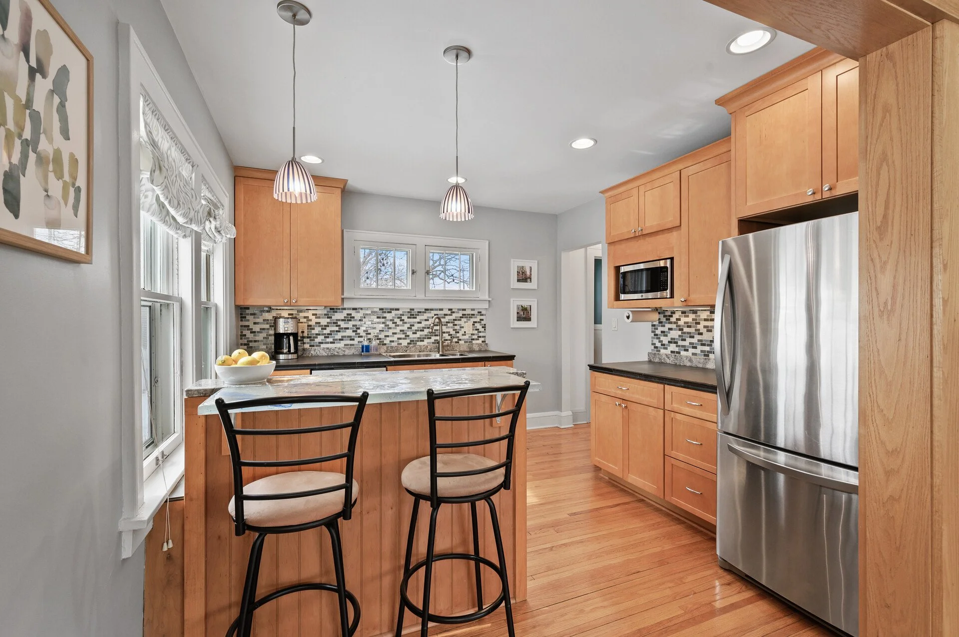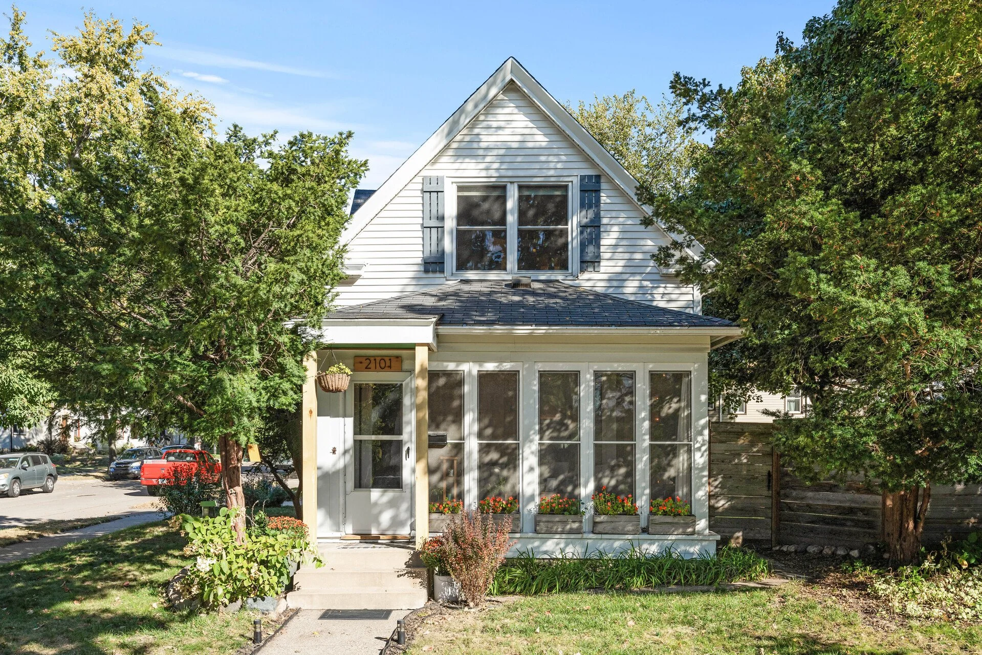 Welcome home to 2101 19th Avenue NE! This beautifully done home has stylish updates throughout while maintaining its classic charm. The sunroom that greets you upon entry is both cozy and functional. Inside you will be welcomed with a seamless main level flow with beautiful hardwood floors and abundant natural light. The living room has a gas fireplace which will surely get used for Minnesota winters. In the tastefully updated kitchen you will find gorgeous soapstone countertops, backlit cabinets, a sizable pantry, a coffee nook and custom built shelving for additional storage. There is plenty of room for a large dining table for all to gather around. A full bathroom and bedroom on the main floor is a perfect set up for guests. Upstairs features two generously sized bedrooms, including a primary with a 3/4 bath. Entertain outdoors on the spacious deck overlooking your extra large and flat lot. The dreamy backyard is fully fenced and perfect for spending time with family, friends and pets. This corner lot home also boasts a 2 car garage, a spacious driveway for additional parking, a pollinator-friendly native garden, and even a cherry tree! Walkable to the Quarry shopping center, breweries, restaurants and more. This is the one you have been waiting for!