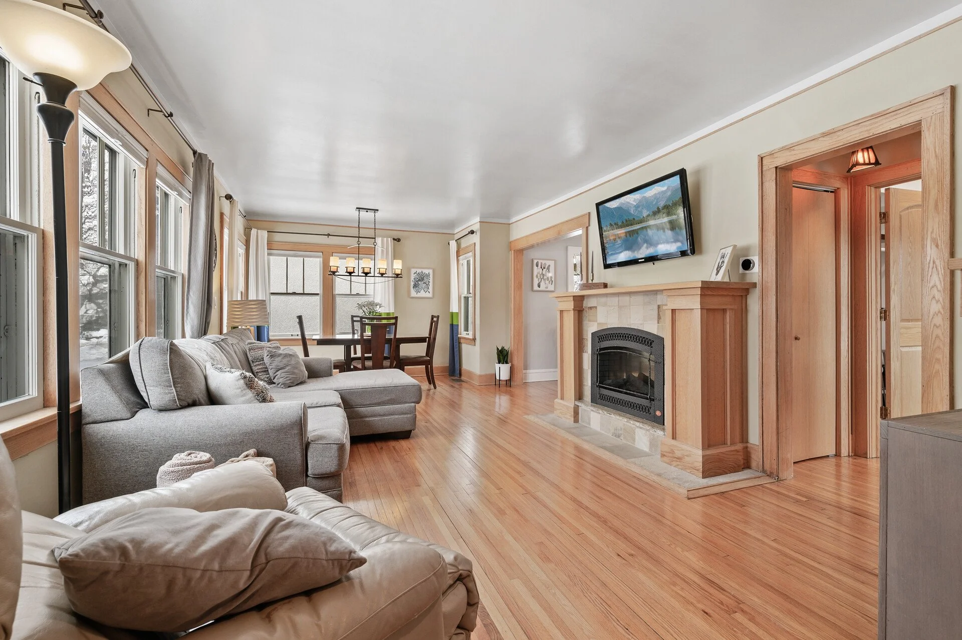 Introducing 1950 Arthur Street Northeast, a charming NE corner lot home in the Windom Park neighborhood! This move-in ready two-story home features a deck, two car garage, and fenced in yard. You will find beautiful hardwood floors in the living room, tall ceilings, gorgeous woodwork including 7-inch baseboards, and a cozy electric fireplace with stone surround. The kitchen features stainless steel appliances including a JennAir range, glass tile backsplash, and breakfast bar. Open dining surrounded with windows offers plenty of natural light. The main floor also offers a guest bedroom (currently being used as an office) and half bath. The spacious upper level master bedroom boasts a separate sitting area. The lower level is perfect for rec space and storage. Conveniently located close to shopping, restaurants, coffee shops, and breweries. Simply move in and make it yours!